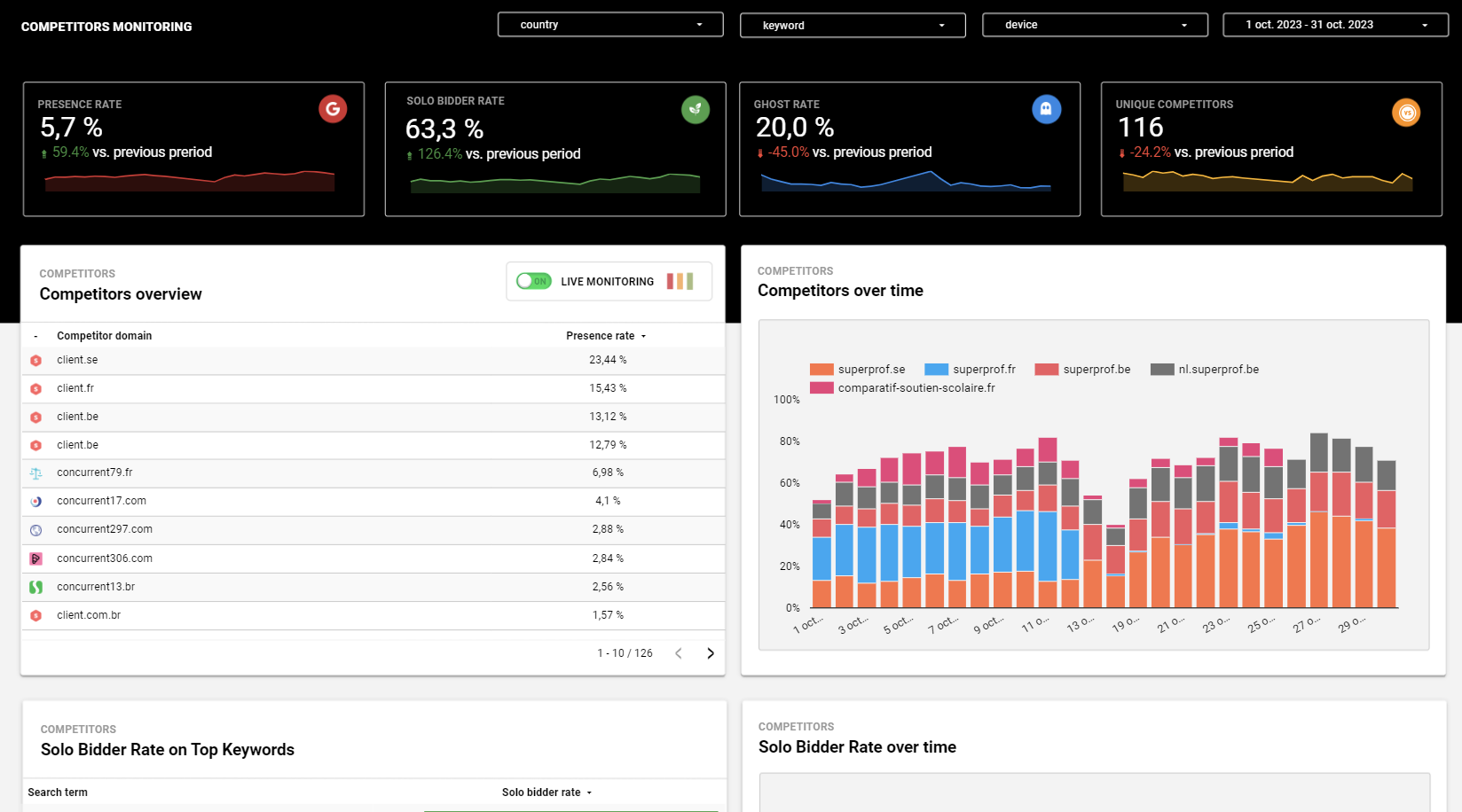 Our advanced technology continuously monitors search engine SERPs and analyzes your competitors’ bidding strategies in real-time. Additionally, it models a blended CTR and CVR based on your ad positions, allowing the technology to adapt strategies based on cost and performance.